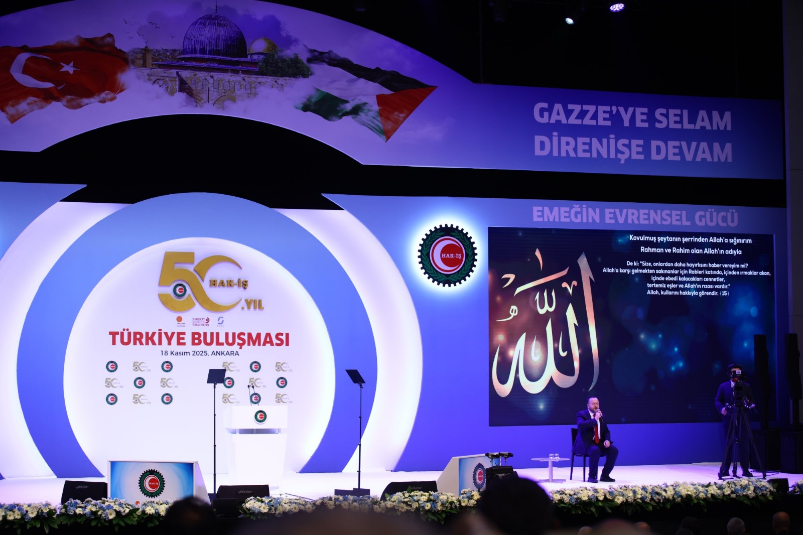 HAK-İŞ Konfederasyonu, kuruluşunun 50. yılı dolayısıyla düzenlediği “HAK-İŞ Türkiye Buluşması” programıyla büyük bir coşkuya sahne oldu. 18 Kasım 2025 tarihinde ATO Congresium’da gerçekleştirilen buluşma, Türkiye’nin dört bir yanından gelen HAK-İŞ teşkilatını bir araya getirdi.